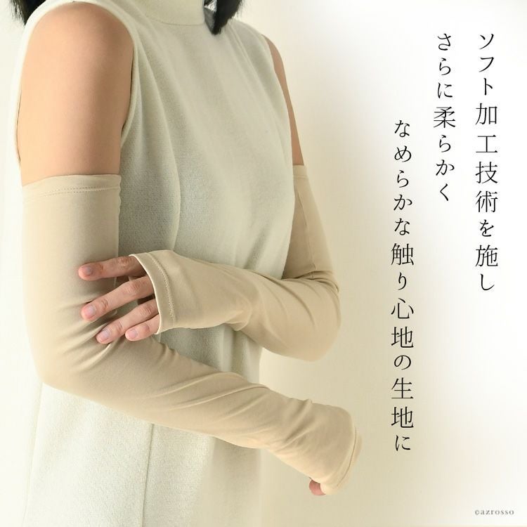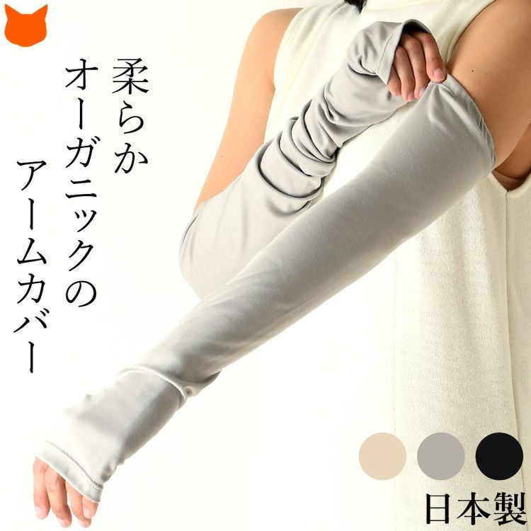 ▼特徴:肌色 綿 オーガニックコットン 日除け 日本製 ブランド 腕カバー 指ぬき