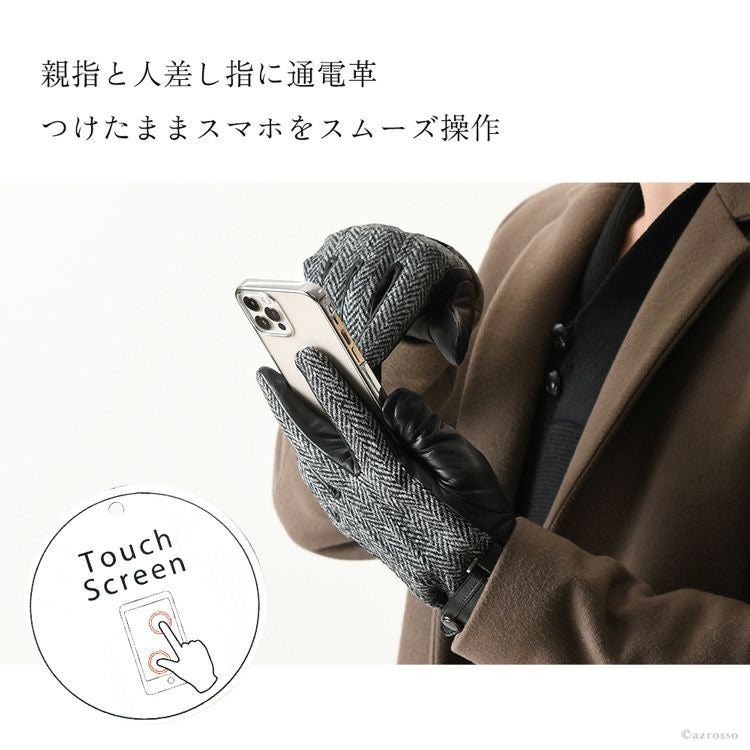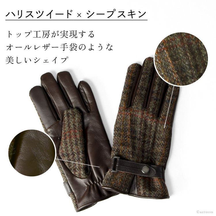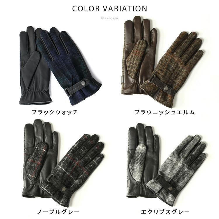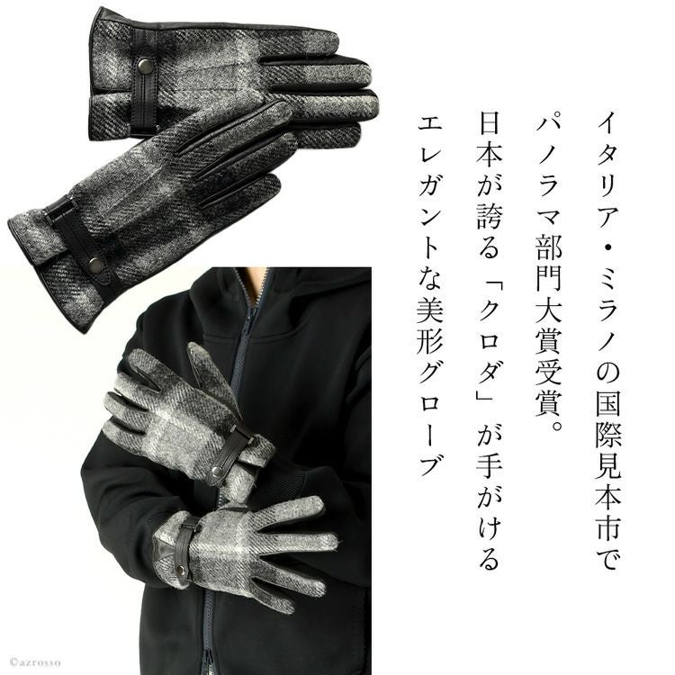 ハリスツイード 手袋 スマホ対応 クロダ メンズ チェック タッチパネル対応 通電 グローブ HarrisTweed クロダ ブランド 日本製【通常ネコポス配送】
