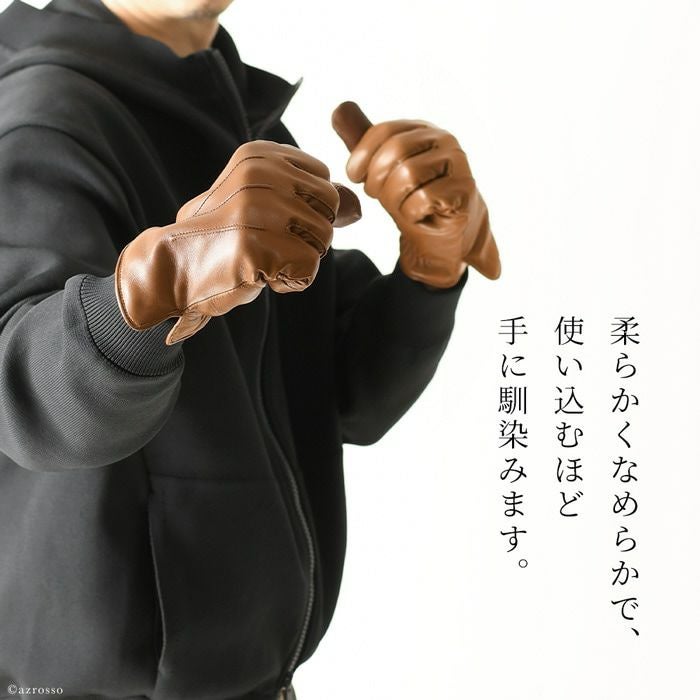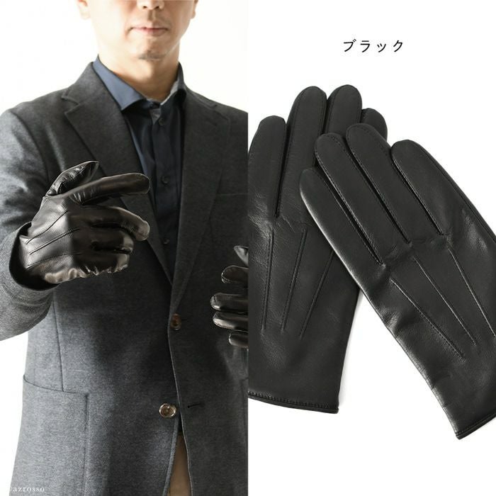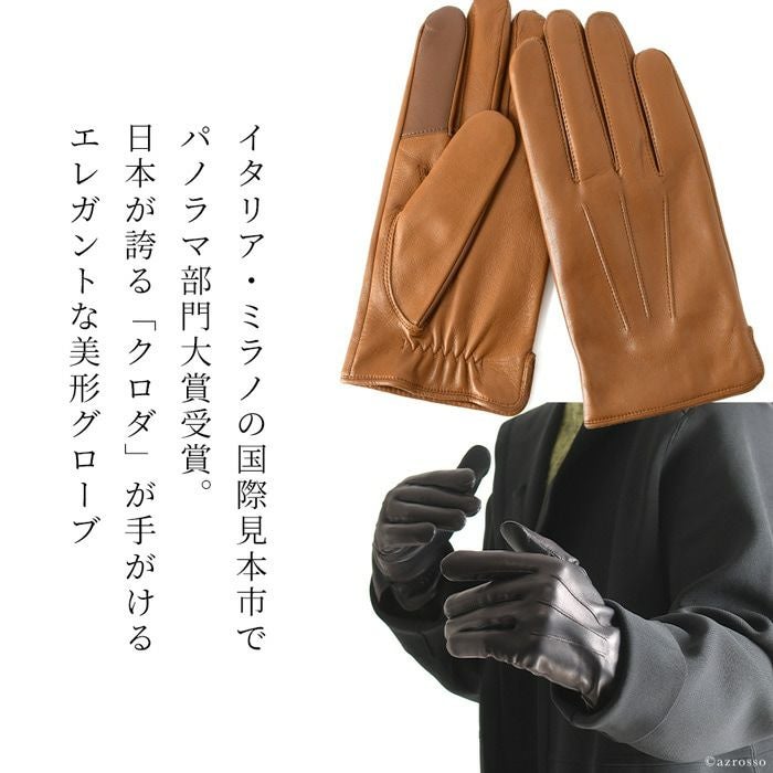 メンズ 本革 手袋 イタリアンラムレザー × カシミヤ 手袋 スマホ対応 日本製 ブランド クロダ タッチパネル対応 通電 グローブ