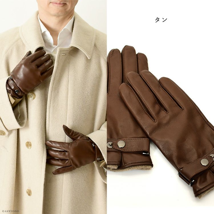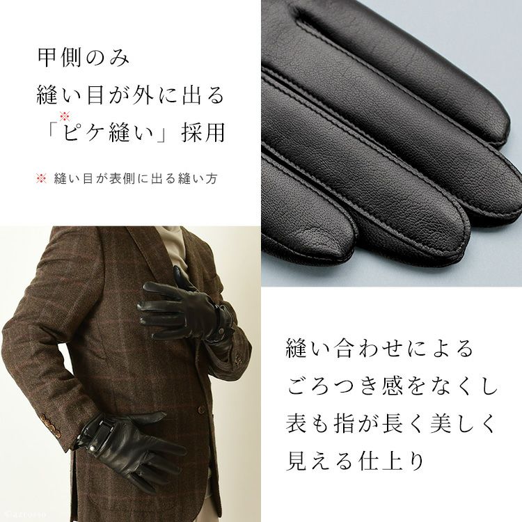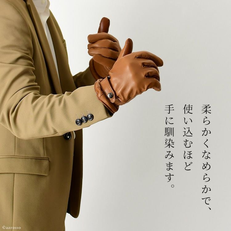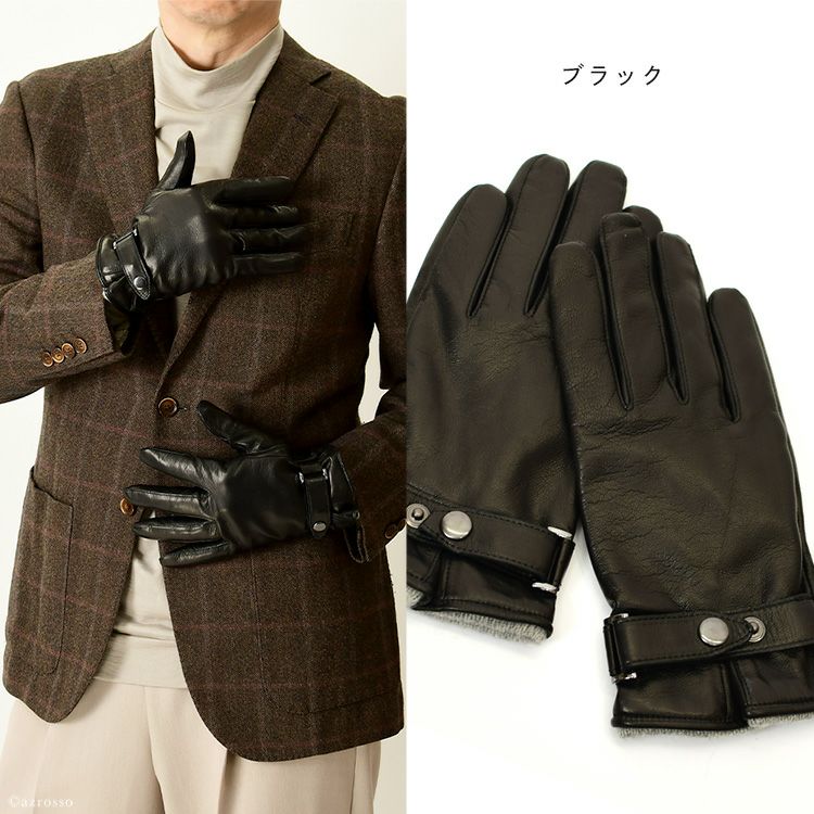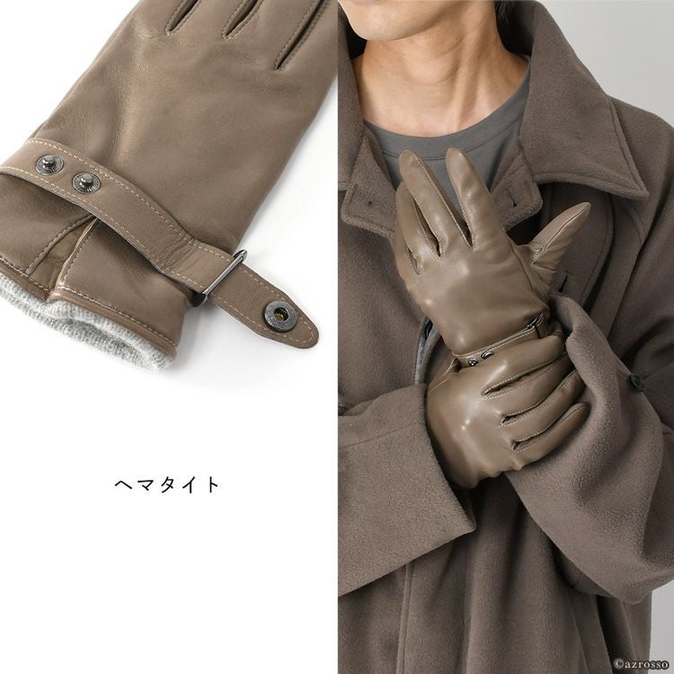 メンズ 本革 手袋 イタリアンラムレザー × カシミヤ 手袋 スマホ対応 日本製 ブランド クロダ タッチパネル対応 スナップボタン付き 通電 グローブ プレゼント ギフト