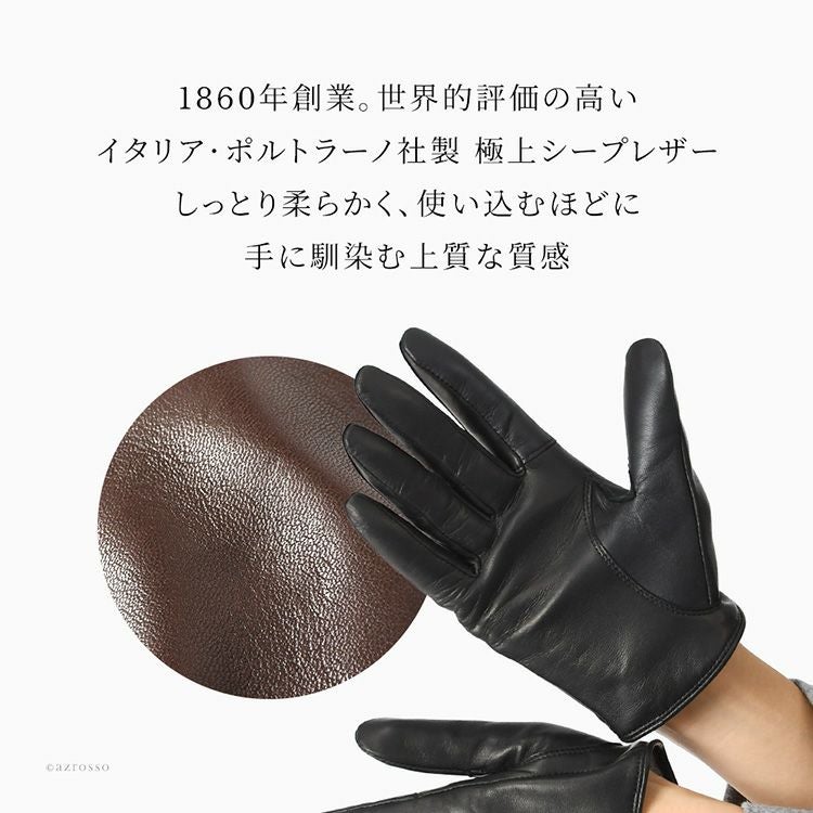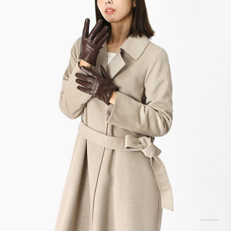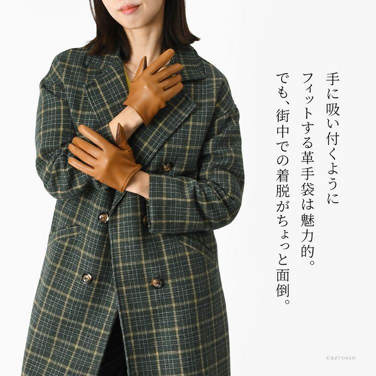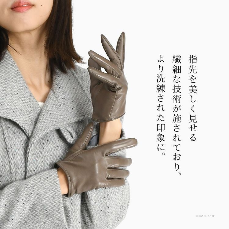 手に吸い付くようにフィットする革手袋は、その滑らかな質感と美しいフォルムが魅力。一方で「街中での着脱がちょっと面倒」という声も多く聞かれます。そんなリアルな声をもとに誕生したのが、日本ブランド〈クロダ〉のショート丈レディースグローブ。着脱の多い都会の生活スタイルに合わせて、使いやすく、快適で美しいシルエットを追求しました。さらに、スマホ対応・タッチパネル対応仕様で、機能性と上質さを両立。「脱ぎやすく、軽やかで、美しい。」3つの願いを叶える手袋です。ショート丈は袖口に干渉しにくく、腕時計やアウターの上からでももたつかない。ビジネスや通勤にもぴったりな万能デザイン。革には、1860年創業のイタリア・ポルトラーノ社から直輸入した極上のシープスキン(羊革)を採用。しっとり柔らかく、使い込むほどに手に馴染む上質な質感が特徴です。そして、指先を美しく見せる繊細な技術が施され、見た目にも洗練された印象に。裏地には、ふんわりとしたカシミヤ100%ニットを使用。指先から手首までやさしく包み込み、冷たい空気の中でも心まで温まるような暖かいつけ心地です。