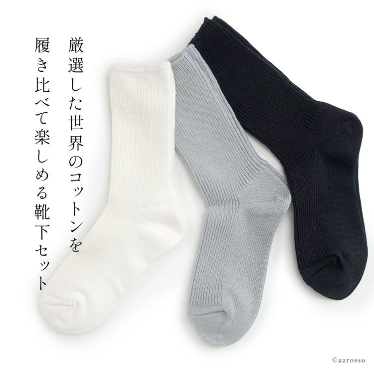 靴下 3足 セット クルー丈 おしゃれ クルーソックス コットン ソックス 綿 くつ下 白 ホワイト グレー 黒 ブラック 22cm 23cm 24cm 25cm 26cm 27cm 日本製 リブソックス 無地 プレゼント 箱入り 箱付き 男女兼用