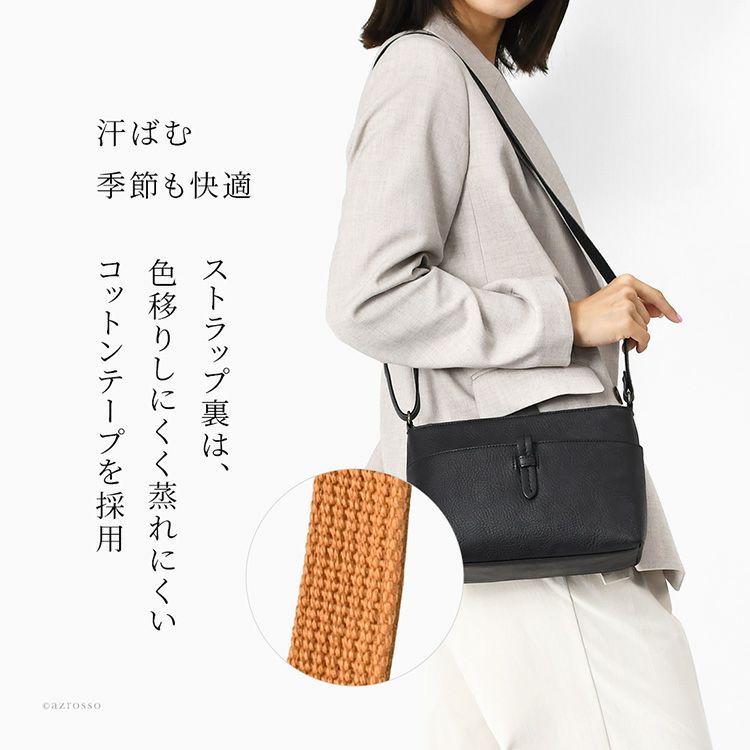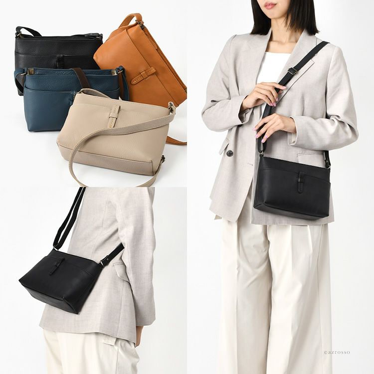 毎日使いにちょうど良い、日本製牛革ショルダーバッグ。傷が目立ちにくく美しいシュリンクレザー。軽量約380g、長財布も収納可能な横長・マチありタイプ。コンパクトながら収納力に優れ、普段使いから旅行まで重宝。 日本製 ミニ ショルダーバッグ レディース 斜めがけ 小さめ 軽量 本革 横型 マチ広め ポケット ファスナー おしゃれ ポシェット コンパクト
