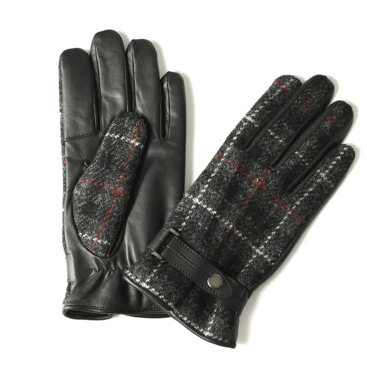 イタリアで大賞受賞の日本ブランド「クロダ」が手がけるハリスツイード×羊革の美しい手袋。指を細く長く魅せカジュアルにもフォーマルにも使い回し抜群 スマホ対応 ハリスツイード×ラムレザー 手袋 チェック柄 レディース レザーグローブ 日本製 手袋 イタリアで大賞受賞の日本ブランド「クロダ」抗菌グローブ【通常ネコポス配送】