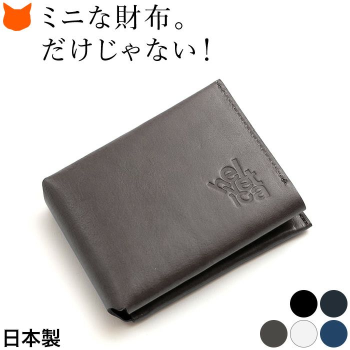 日本ブランドの上質な牛革を使用したスタイリッシュなミニ財布。素材を生かしたシンプルでユニセックスなデザイン。プレゼントにもオススメ 本革 ミニ財布 二つ折り レザー コンパクト ウォレット ブラック ネイビー 日本製 ブランド ヘルベチカボールド Helvetica bold