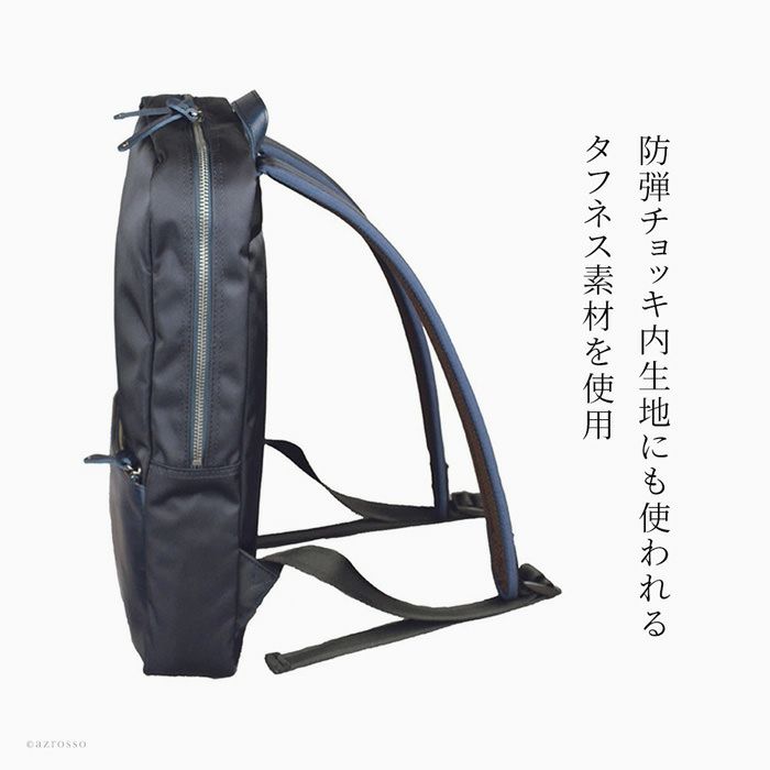 スタイリッシュなスクエア型PCリュックを日本の老舗鞄工房 服部(はっとり)から。きちんと感と軽さを両立するナイロン×牛革仕立て。クッション入りショルダーベルトで肩が痛くならない 日本製 ナイロン レザー リュック 500g以下 軽量 薄型 PC収納 軽い ビジネスリュック レディース ネイビー 紺
