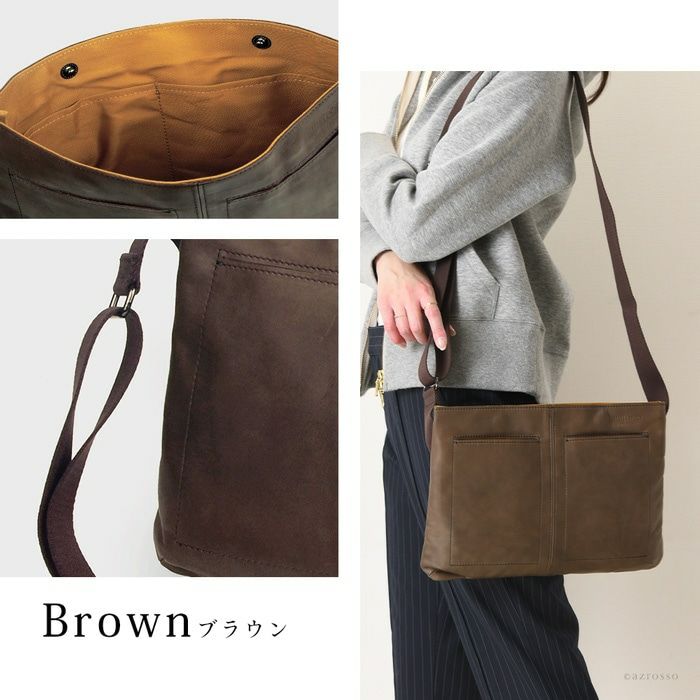 コンパクトかつ軽量。斜め掛け、ショルダーバッグとしても使える身軽なサコッシュを日本の老舗鞄工房 服部(はっとり)から。ムラ感のある染めが魅力の馬革仕立て 軽量 サコッシュ ショルダーバッグ 本革 レザー バッグ 日本製 コンパクト 薄マチ レディース