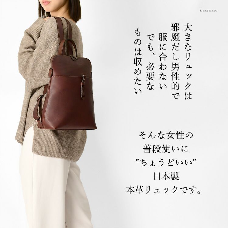 コンパクトな本革リュック レディース リュックサック A4が入る 本革レザー リュック 日本製 女性 普段使い 旅行 仕事 自転車通勤にもおすすめ 軽量 軽い キャメル ブラウン ダークブラウン ネイビー ブラック 黒
