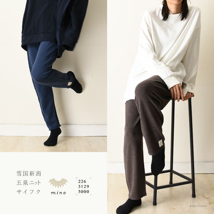 お腹をしっかり温めながらリラックスして過ごせる、ハラマキとニットパンツを一体化させた「お腹をつつむ伸びるニットパンツ」。履いていることを忘れるくらい軽い着心地。レギンス、レギュラー、ワイドの3タイプ ニットパンツ ルームウェア 部屋着 暖かい 日本製 腹巻き はらまき ポケット付き マタニティ パンツ 五泉 ニット パジャマ レギンス 冷えとり 冷え対策 グレー ネイビー ブラウン 紺 茶色 男女兼用 大きいサイズ