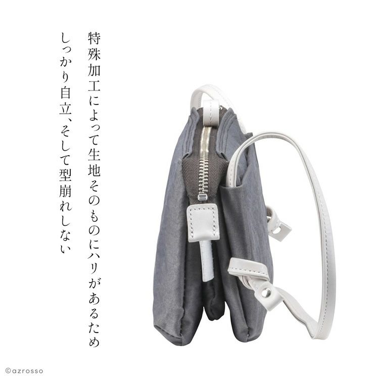 軽いしなやかな高機能コンブナイロン使用のウォレットショルダーバッグ。側面にオープンポケットを1つ、内装にカード入れを9つ+ファスナーポケットとオープンポケットを各一装備した使いやすいお財布ショルダー 500g以下 お財布 ショルダー 横型 ウォレット スマホが入る ナイロン ミニバッグ 斜めがけ 軽量 撥水 日本製 豊岡鞄 ブランド TUTUMU Osanpo Wallet 白 紺 グレー レディース