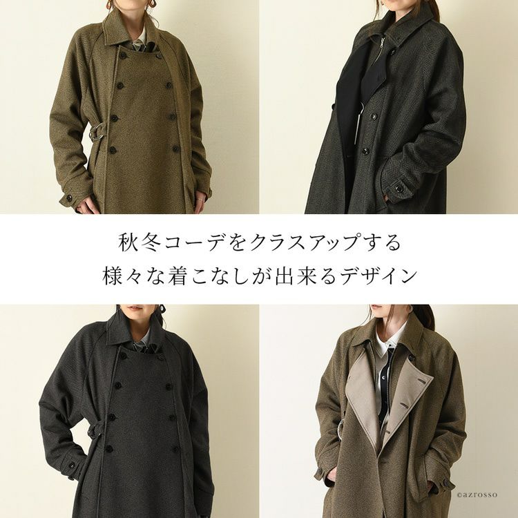 トレンドのオーバーサイズにレイヤードデティールを施した、纏うだけでサマになるロングコートを日本ブランドNaNo Art(ナノアット)から。秋冬春に重宝するおしゃれなレイヤードコート レイヤード コート ロングコート ウール 風 トレンチコート 大きいサイズ アウター ロング丈 日本製 無地 おしゃれ ビックサイズ 黒 ブラック カーキ ウエストベルト アシンメトリー レディース