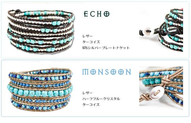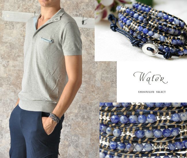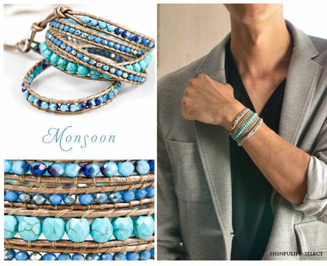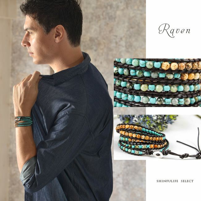【ブルー・ターコイズ系】メンズ 本革 5連 ラップブレスレット アメリカ製ブランド【LIZOU】リゾ インポート 男女兼用