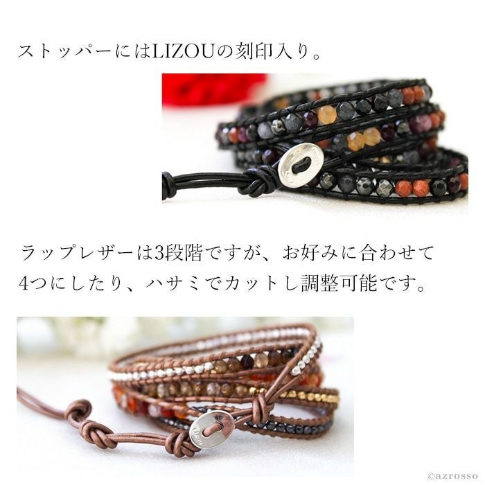 【ブラック・ブラウン系】メンズ 本革 5連 ラップブレスレット アメリカ製ブランド【LIZOU】リゾ インポート 男女兼用