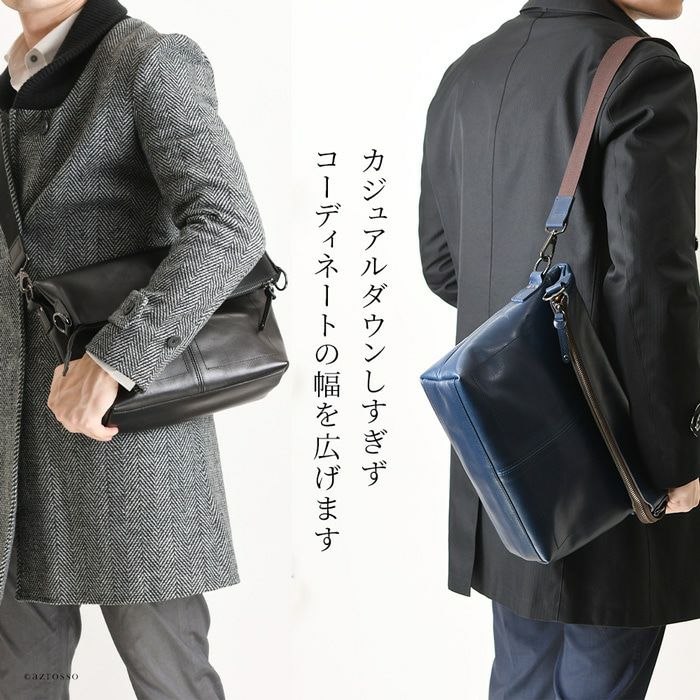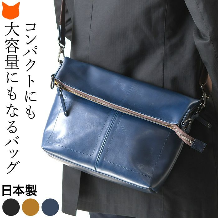2way ショルダーバッグ 本革 A4収納 レザー バッグ 日本製 コンパクト 大容量 メンズ