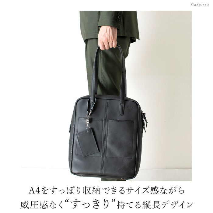PC収納 通勤バッグ 縦型 トートバッグ 大容量 A4 本革 パスケース付き 日本製 ビジネスバッグ メンズ