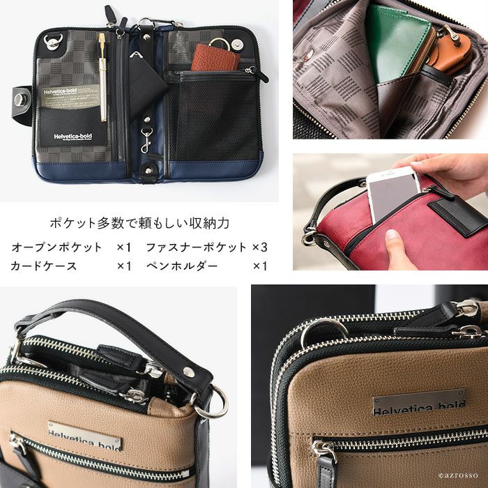 2way レザー バッグ ミニ ショルダーバッグ 本革 ポーチ メンズ ブラック ベージュ ワイン ブルー 日本製 ブランド ヘルベチカボールド Helvetica bold ミニバッグ
