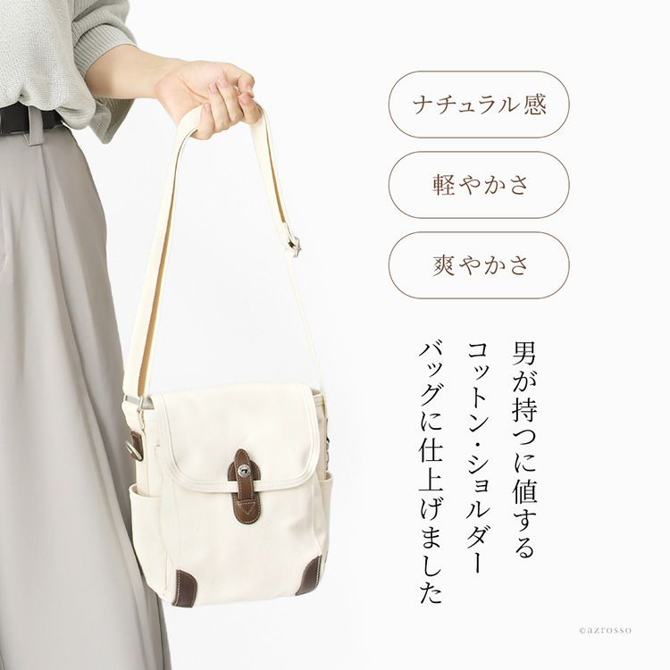 ▼特徴:小さめ 小さい ミニ ショルダー 斜めがけ 肩掛け 整理整頓 収納ポケット 背面ポケット オーガナイザー Dカン ナスカン 綿 コットン オーガニックコットン GOTS認証 マチ広 縦型 シンプル 軽い 軽量 大人 男性 紳士 おしゃれ ナチュラル カジュアル