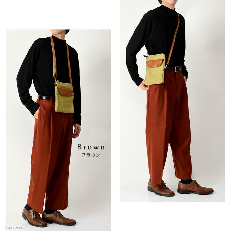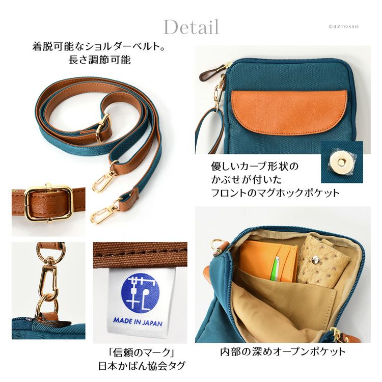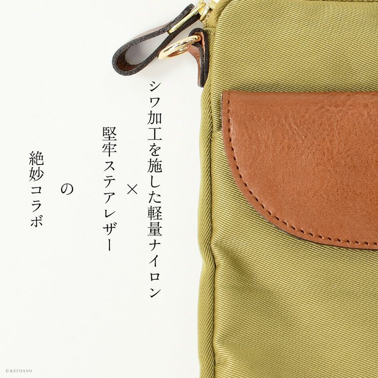 日本製 ナイロン ショルダーバッグ スマホ操作 軽い 斜めがけ 牛革 ミニバッグ ブラック ブラウン ブルー 水色 豊岡 鞄 ブランド 豊岡工房 メンズ 本革