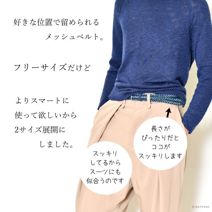 細身 メッシュベルト 日本製の上質なレザーで作ったメンズベルト 使いやすい 人気のカラー ブラック ブラウン ネイビー ビジネスにもカジュアルにも