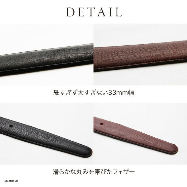 見比べる機会が少ないので、本当にコスパの良いものかどうか見極めるのが難しい場合もありますが、バックルの金属部分の高級感や、縫製の丁寧さ、裏側まで本革が使われているなど、私たちが隅々までチェックしたお墨付きの上質なレザーベルトで、着こなしをグレードアップさせて下さいね。