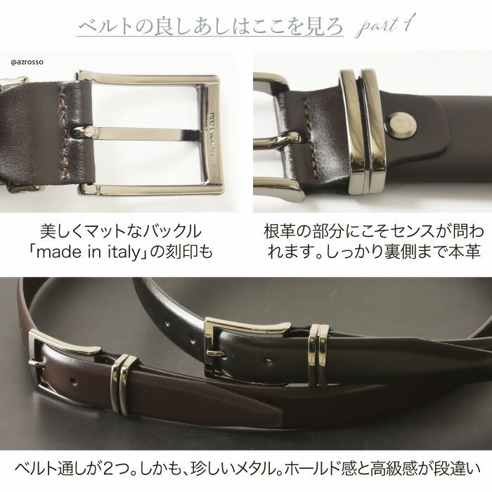 バッグや靴に比べて手を抜きがちですが、細部にまで拘ってこそ、その人のお洒落さが際立ちますよね。本革の上質なベルトは、立ち姿を美しく魅せ、自信を持たせてくれるので、ビジネスシーンでも大活躍してくれます。
