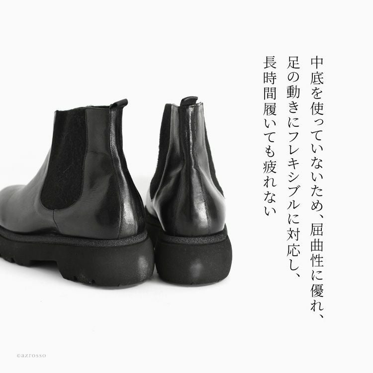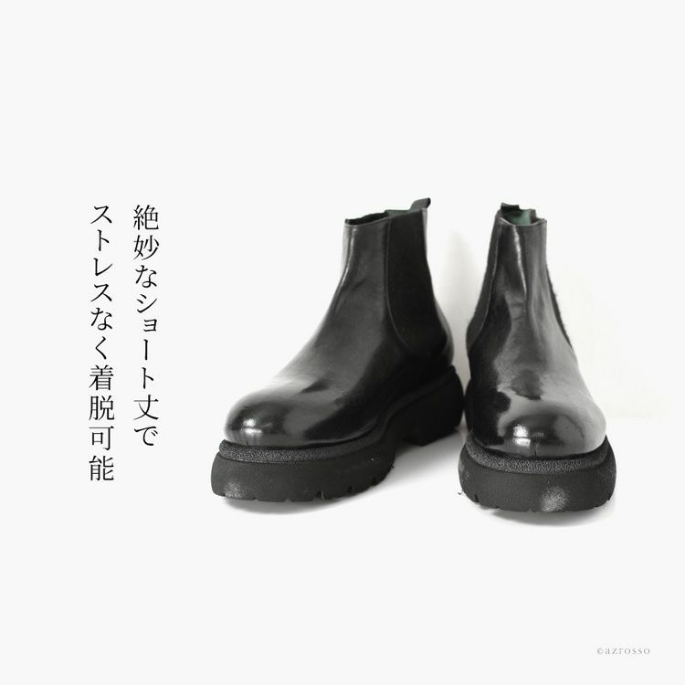 ▼特徴:サイドゴアブーツ|ショートブーツ|本革|太ヒール|タンクソール|厚底|チャンキーソール|軽い|軽量|歩きやすい|柔らかい|痛くない|疲れにくい|イタリア製|チェルシーブーツ|ショート ブーツ