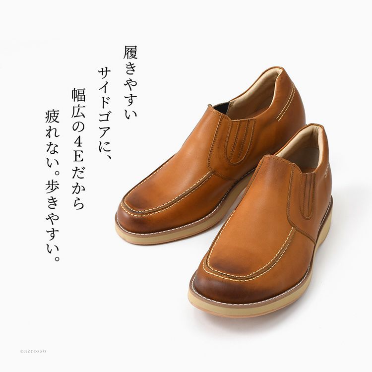 ※5cm、5.5cm、6cm、7cmアップという表記は靴底のヒール部分込みの構造上の数値ですので、お客様の体重等により、使用時の身長アップ効果に差異が生じます。これは、インソールや底に柔軟性やクッション性等を持たせているためですので、ご了承下さい。