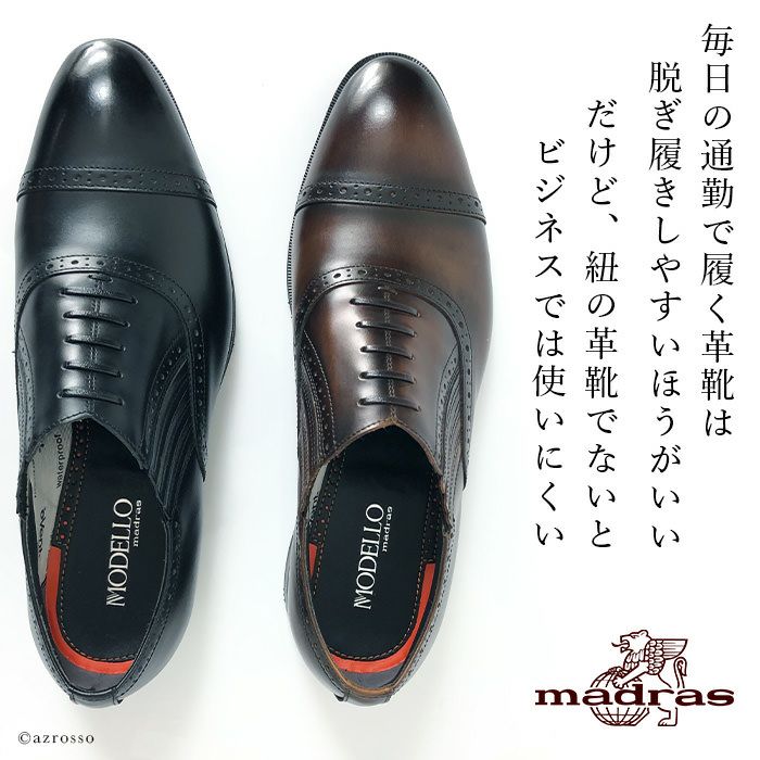 25cm-27.5cm|マドラス モデロ madras 本革 ビジネスシューズ 紐なし 革靴 黒 ブラック ブラウン メンズ