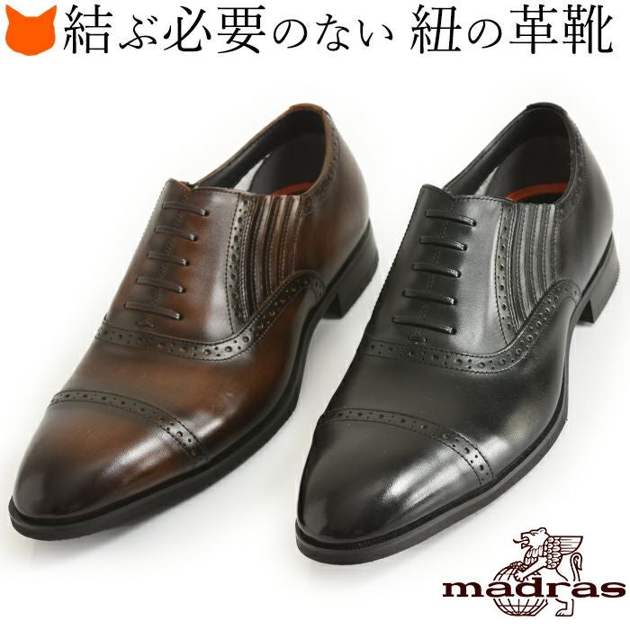 日本を代表する老舗ブランド madras(マドラス)の高級感漂うストレートチップビジネスシューズ。幅広 蒸れない 履きやすいを実現したシューレスな紳士靴 25cm-27.5cm|マドラス モデロ madras 本革 ビジネスシューズ 紐なし 革靴 黒 ブラック ブラウン メンズ