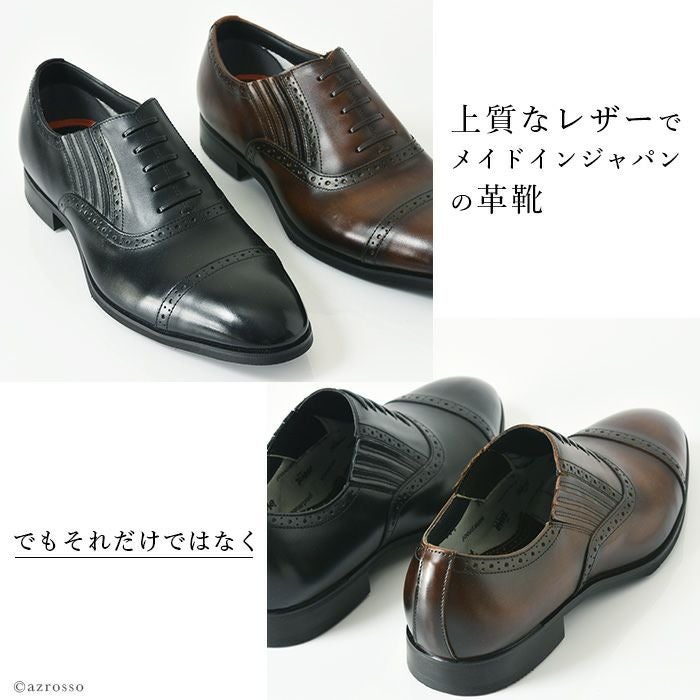日本を代表する老舗ブランド madras(マドラス)の高級感漂うストレートチップビジネスシューズ。身長 6cm アップ 上げ底 脱いでもシークレットだと分からない。幅広 クッション性抜群の紳士靴 23cm-27cm|マドラス モデロ madras 本革 シークレットシューズ ビジネスシューズ 革靴 黒 ブラック ブラウン メンズ