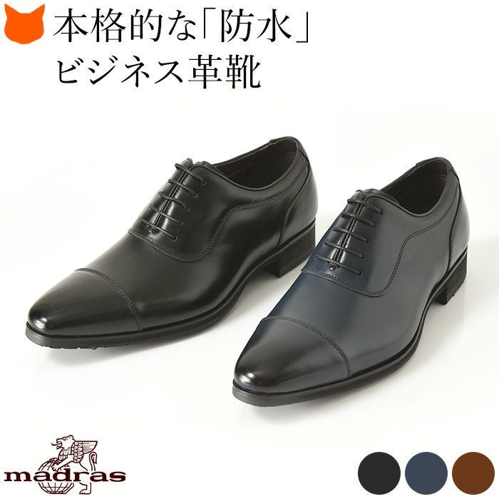 日本を代表する老舗ブランド madras(マドラス)の高級感漂うストレートチップビジネスシューズ。防水に見えない本格仕様。雨や雪の道も滑りにくい紳士靴 25cm-27.5cm|マドラス モデロ madras 本革 ビジネスシューズ 防水 革靴 黒 ブラック ブラウン メンズ 雨ビジシリーズ