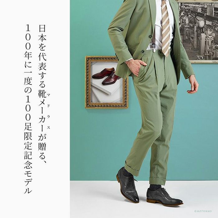 日本を代表する靴メーカーmadras(マドラス)が贈る、100年に一度の100足限定記念モデル。抗菌・抗ウイルスワックス仕上げの新時代のビジネスシューズ 26cm-27cm|100足限定 革靴 抗菌 抗ウイルス ビジネスシューズ ダークグレー 日本製 madras マドラス 100周年記念モデル