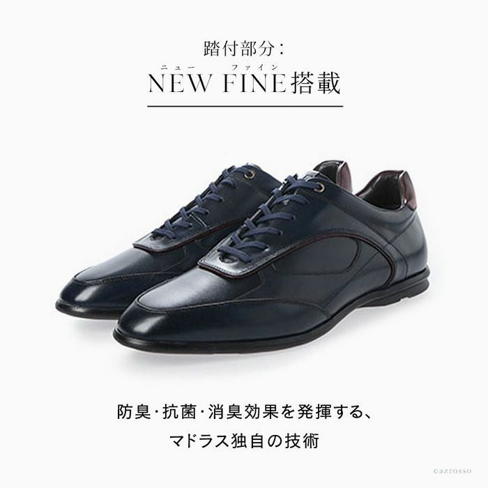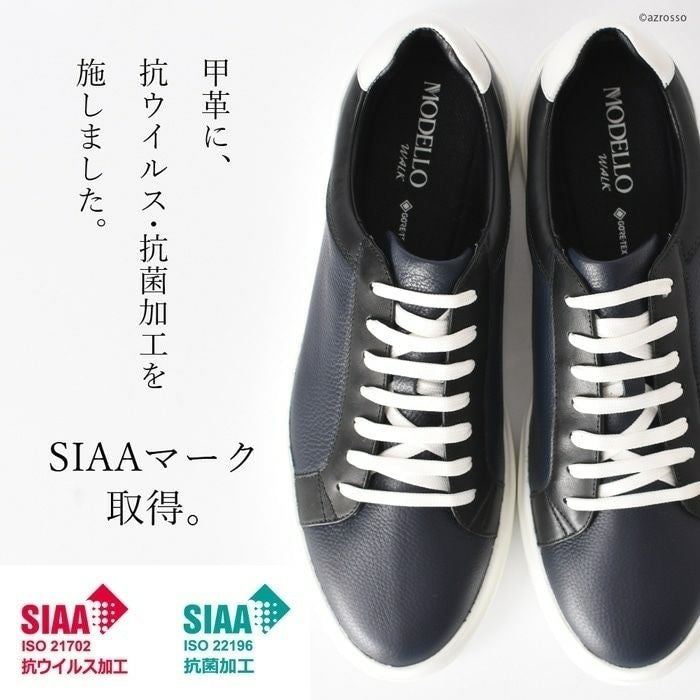 日本を代表する靴メーカーmadras(マドラス)が贈る、上質本革仕立てのメンズスニーカー。GORE-TEX(ゴアテックス) ファブリクス+SIAAマークの抗菌・抗ウイルス加工を施した防水牛革を使用し、雨の日も安心 24.5cm-27.5cm|防水 本革 スニーカー 抗菌 抗カビ 防臭 消臭 カジュアルシューズ 軽量 ネイビー ブラウン レッド バイカラー 日本製 madras MODELLO マドラス モデロ