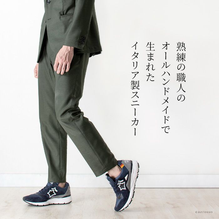 100%Made in Italyにこだわり、熟練したイタリアの職人が一点一点ハンドメイドで作り上げたスニーカーは極上のフィット感。