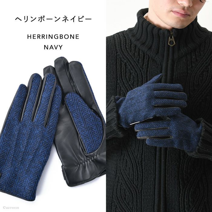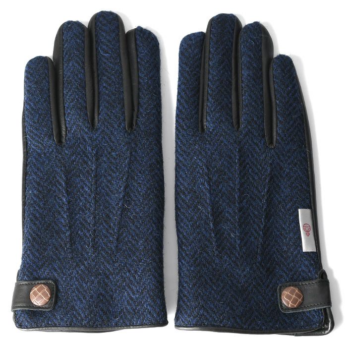 ハリスツイード 手袋 スマホ対応 クロダ メンズ ヘリンボーン タッチパネル対応 通電 グローブ HarrisTweed クロダ ブランド 日本製【通常ネコポス配送】