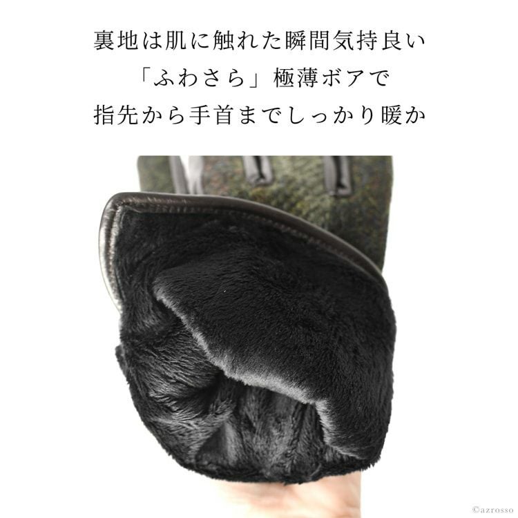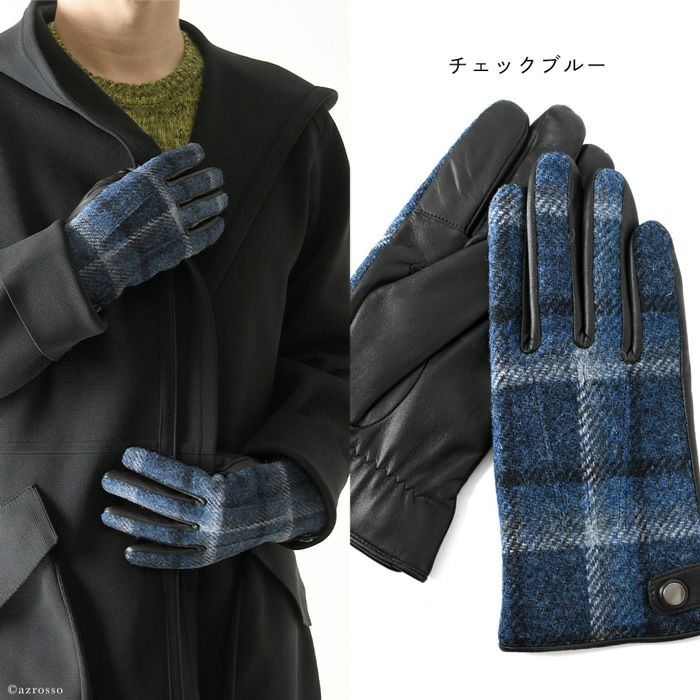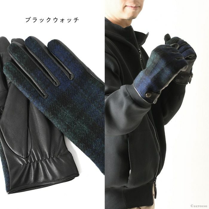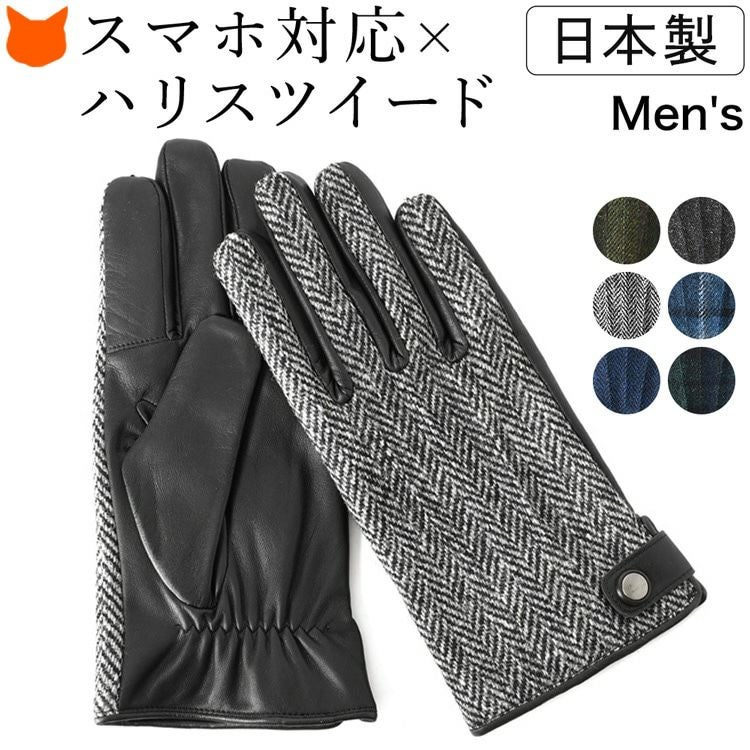 ▼特徴:スマホ対応|タッチパネル対応|スマートフォン対応|ハリスツイード|通電ジャージ|マイクロボア|暖かい|防寒|レザーグローブ|柔らかい|導電性|チェック柄|異素材|Touch Screen