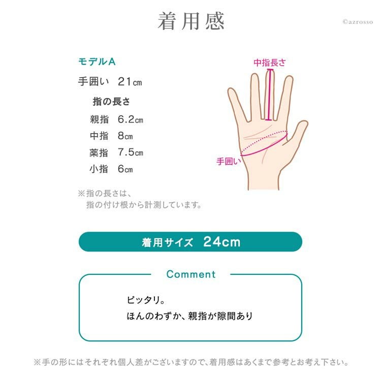 ※手の形にはそれぞれ個人差がございますので、着用感はあくまで参考とお考え下さい。