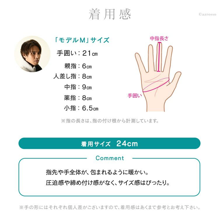 ※手の形にはそれぞれ個人差がございますので、着用感はあくまで参考とお考え下さい。