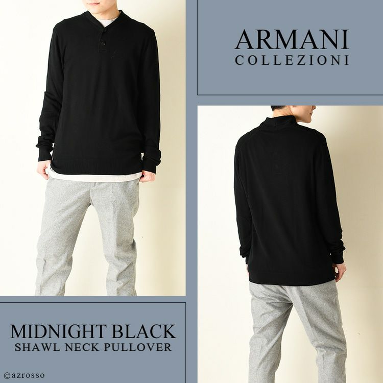 メンズニット 【ARMANI COLLEZIONI】アルマーニ コレツィオーニメンズ セーター 薄手 シンプル コットン 黒 ブラック グレー 洗濯可
