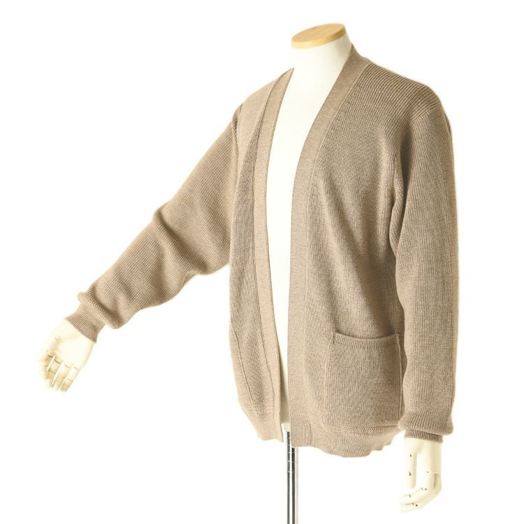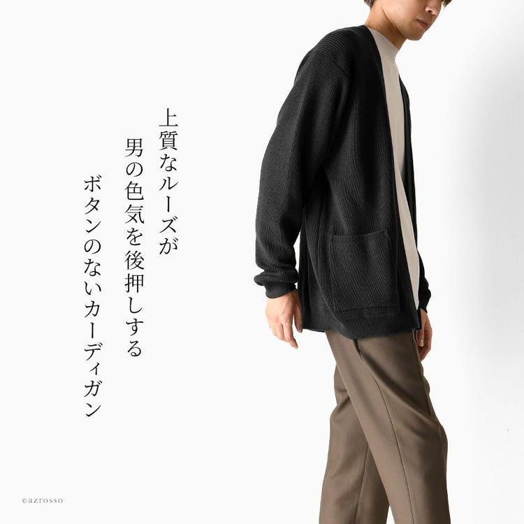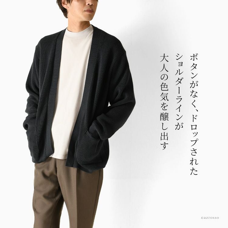 ウール シルク カーディガン ボタンなし 日本製 ノーカラー ニット 厚手 暖かい 毛玉になりにくい ゆったり きれいめ 大きめ 長袖 カーデ 黒 ブラック ネイビー ベージュ グレージュ 茶色 大きいサイズ メンズ