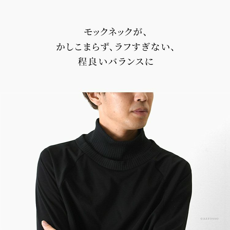 1枚で上品に仕上がる、極上スーピマコットン(高級綿)使用のメンズカットソーを日本ブランドNaNo Art(ナノアット)から。男性へのプレゼントにもおすすめなおしゃれな長袖トップス 長袖 カットソー メンズ 黒 リブ モックネック トップス 無地 高級 コットン 1枚で決まる ゆったり 日本製 ブランド