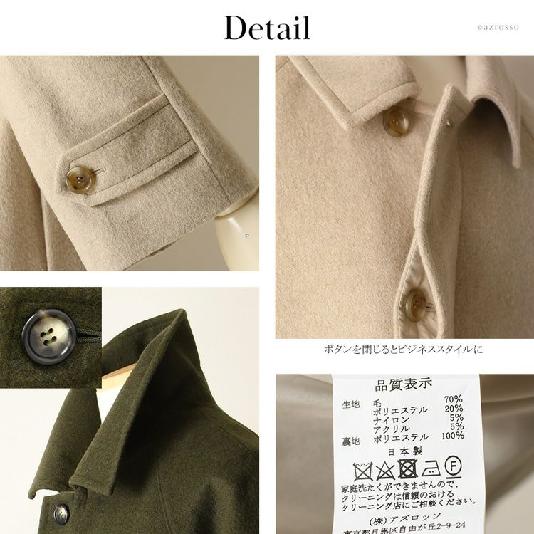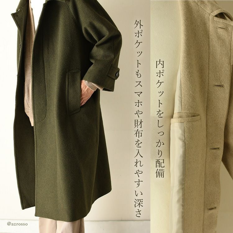 ウール コート ロングコート 大きいサイズ 袖 ゆったり ロング丈 軽い 暖かい ベージュ グリーン 緑 茶色 レディースコート ポケット 付き 軽量 メンズ アウター おしゃれ きれいめ 日本製