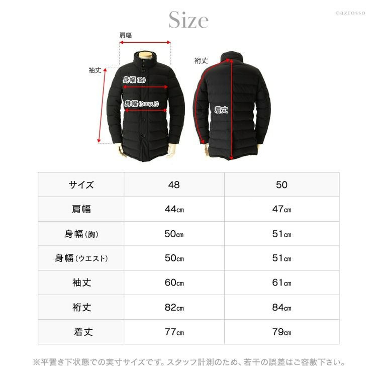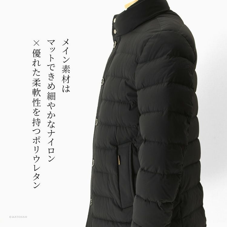 カジュアルな装いはもちろん、スーツの上からも羽織りやすい、長過ぎず短過ぎない絶妙な着丈(セミロング)のダウンコートです。