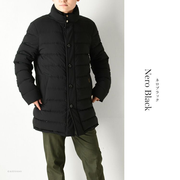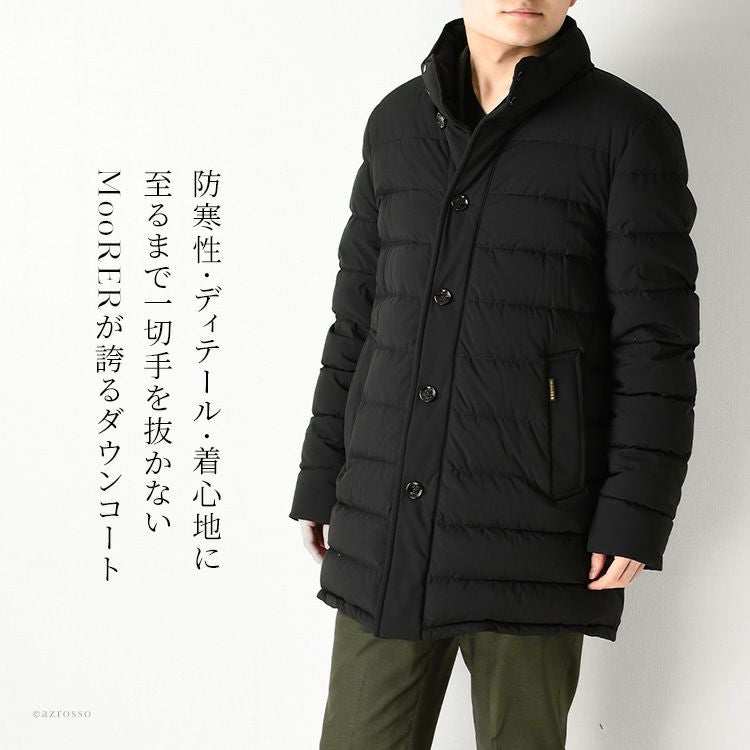 マットできめ細やかなナイロンでつくられたMooRER(ムーレー)のシングルブレストダウンコート「CALEGARI-KM」。防寒性を高める取り外し可能なライナー(前立て部分のみ)付き ムーレー ダウンジャケット カレガーリ moorer CALEGARI-KM 黒 ブラック シングルブレスト ライナー付き アウター 撥水 ダウン ジャケット 高級 中綿ジャケット イタリア製 防寒 暖かい メンズ