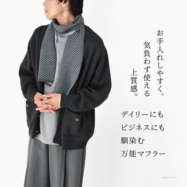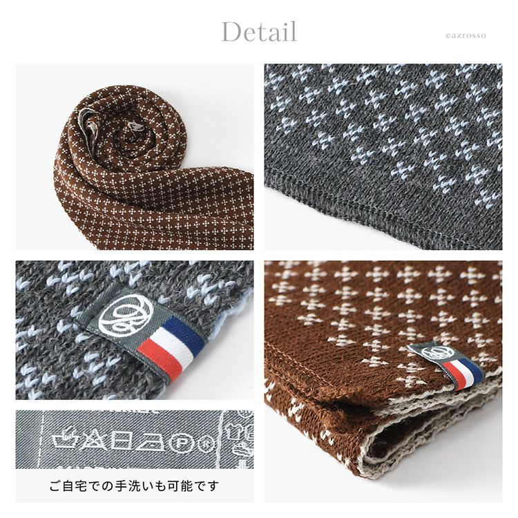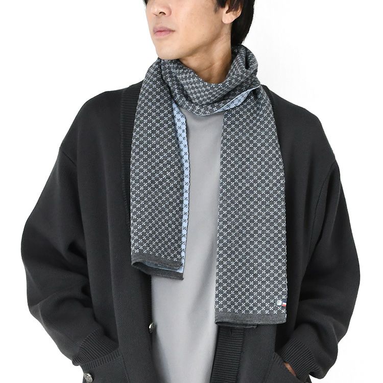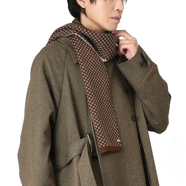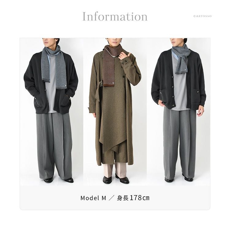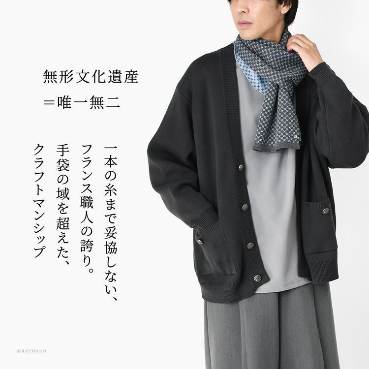 ニット ロングマフラー ウール混 フランス製 ブランド ちくちくしない 柄 メンズ 180×24 MAISON BONNEFOY メゾンボンヌフォア