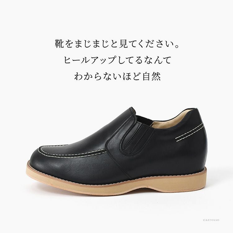 ※5cm、5.5cm、6cm、7cmアップという表記は靴底のヒール部分込みの構造上の数値ですので、お客様の体重等により、使用時の身長アップ効果に差異が生じます。これは、インソールや底に柔軟性やクッション性等を持たせているためですので、ご了承下さい。
