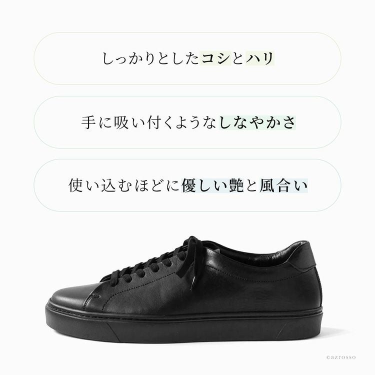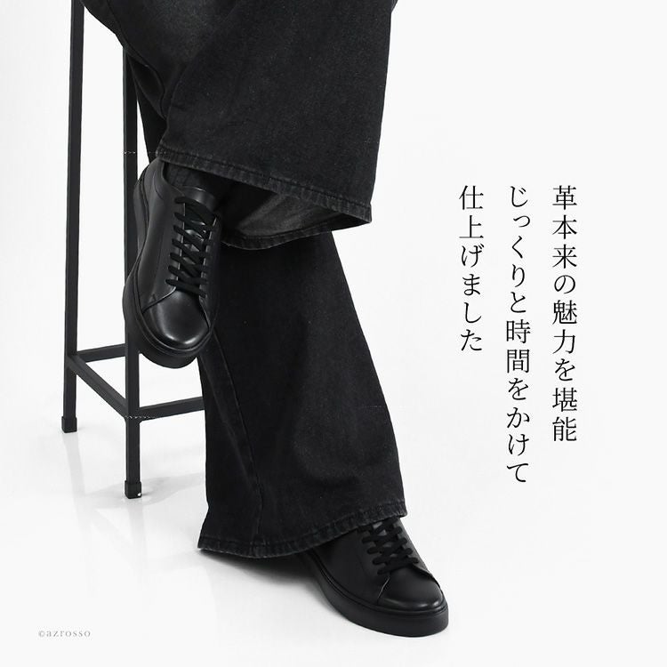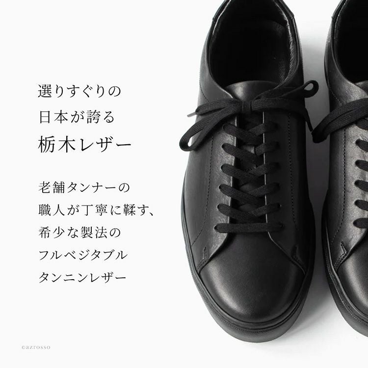 選りすぐり老舗タンナーの上質な栃木レザーで一新したTOSSの定番モデル「チェスター」は、丈夫なビブラムソールを使って日本で靴職人さんが丁寧に仕立てた高級なメンズレザースニーカー レザー スニーカー メンズ 黒 おしゃれ 40代 50代 おすすめ ビブラムソール 日本製 コンフォートシューズ ローカット ローテク