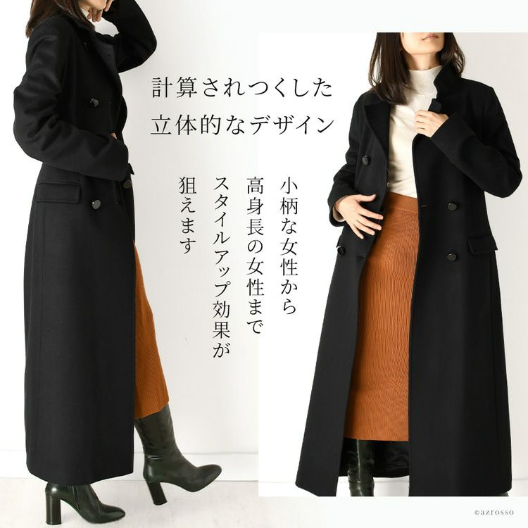 ウールコート ロング コート ダブルボタン ネイビー ブルー ブラック レディース アウター ブランド Heresis エレシス