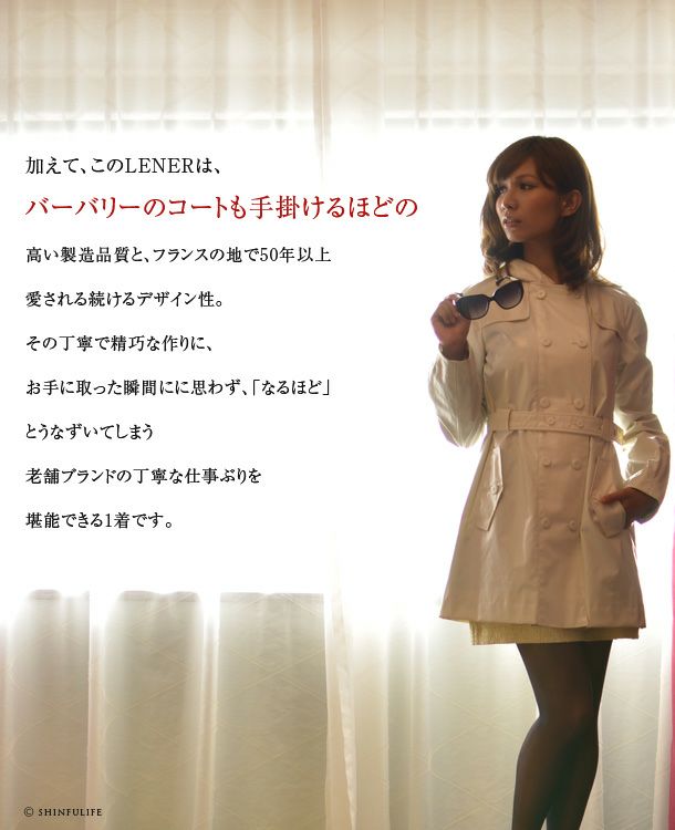 4. フランスの人気ブランドのトレンチはレインコートと同等以上の防水性能。LENER/レネル/レネール/晴雨兼用 WINCH トレンチコート/おしゃれ/スプリングコート/春/撥水/ゴルフ/完全防水/レディース/インポート