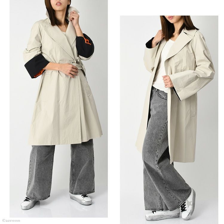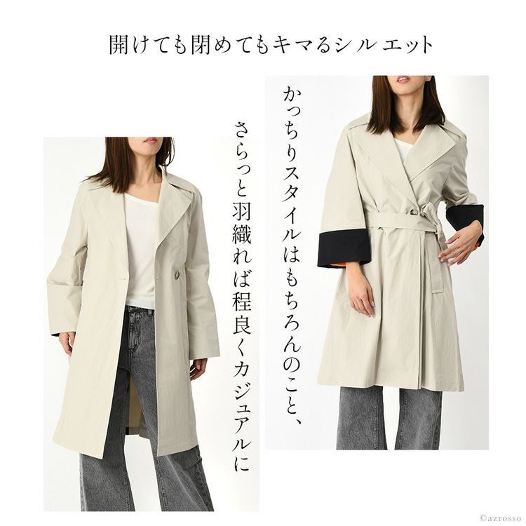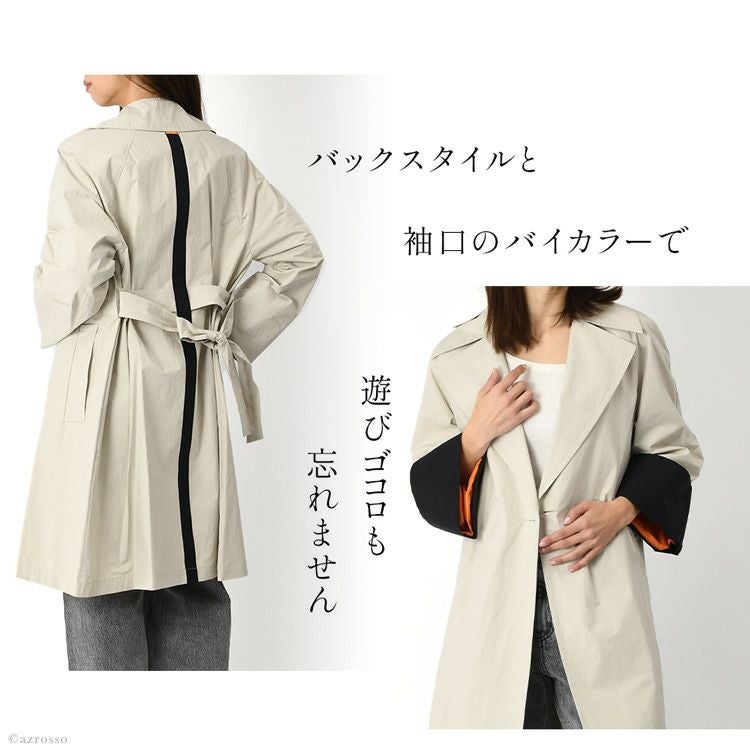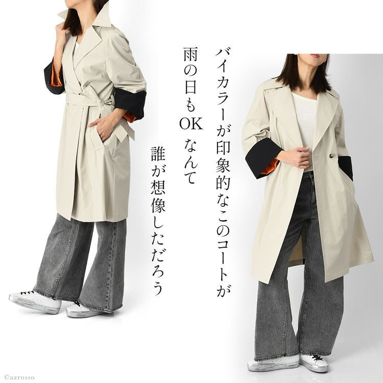▼特徴:バイカラー|ミドル丈|晴雨兼用|軽量|軽い|無地|春コート|スプリングコート|ベルト付き|ゆったり|ミドルコート|モノトーン|薄手